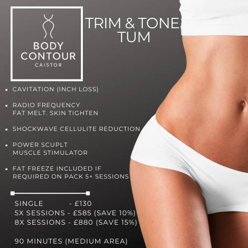 Trim & Tone the waist with a combination of cavitation, fat melting, skin tightening and muscle toning.